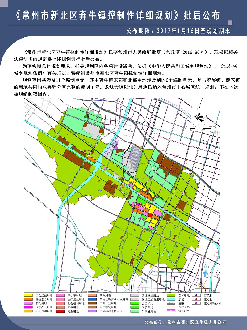 《常州市新北区奔牛镇控制性详细规划》批后公布