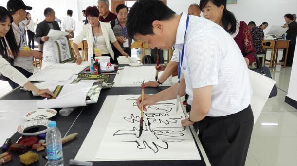 大会之后进行了书法交流和展出,展出的150余幅双钩书法作品潇洒飘逸、笔力险劲,楷、隶、行、草各种书体进入笔端便如行云流水、入篇成形,既充分展示了作者深厚的艺术功底,又彰显出双钩书法的博大精深。