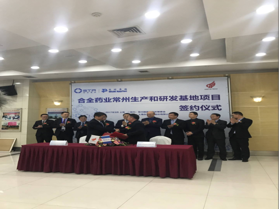 3月1日下午,常州国家高新区管委会与药明康德集团企业合全药业在上海正式签署合作框架。常州市委书记费高云、常州市委常委、秘书长蔡骏、常州市委常委、常州国家高新区党工委书记周斌、常州市商务局局长潘冬铃、新北区委常委、常州滨江经济开发区党工委书记盛晓东等领导参加并见证本次签约。