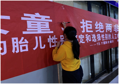 每个前来观影的女童还在“关爱女童、拒绝两非”横幅上签上自己的名字。