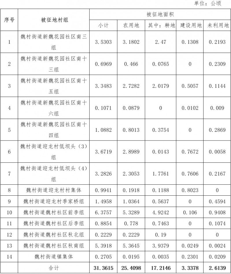 根据拟征收土地现状调查结果,本次拟征收土地现状如下: