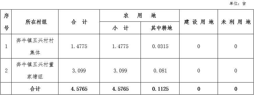二、征(用)收土地位置:奔牛镇五兴村村集体、五兴村董家塘组(详见征收土地红线图)