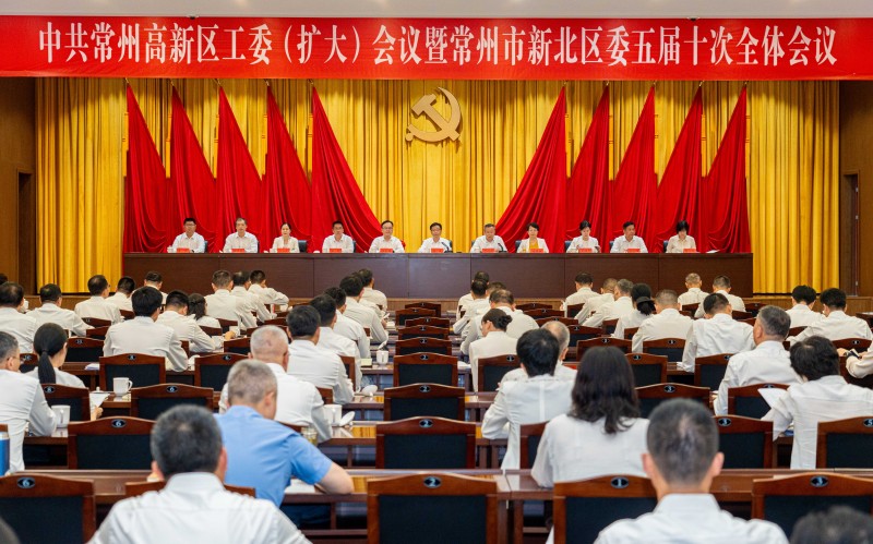 7月19日,中共常州高新区工委(扩大)会议暨常州市新北区委五届十次全体会议召开。全会以习近平新时代中国特色社会主义思想为指导,深入学习贯彻党的二十大和二十届二中、三中全会精神,全面落实习近平总书记对江苏工作重要讲话精神,按照省委十四届九次全会和市委十三届十一次全会部署要求,动员全区上下牢记嘱托、感恩奋进、走在前列,坚决扛好挑大梁责任,努力为全省、全市发展大局作出高新贡献。