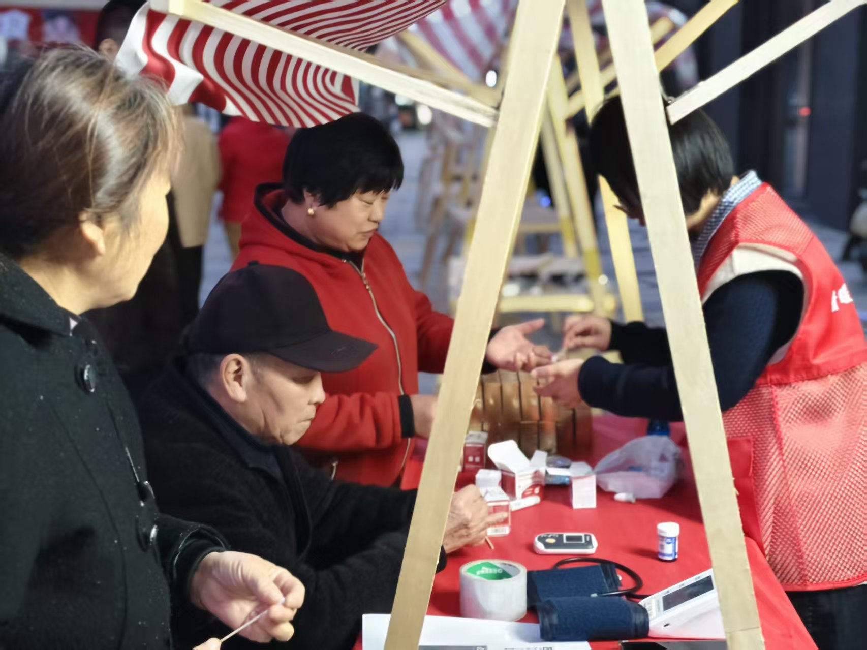 “怀旧嘉年华”环节热闹开场,为居民们提前营造了浓厚的节日氛围。时光市集里,软糯香甜的重阳糕勾起了大家记忆深处的味道,一口下去满是童年与节日的双重甜蜜;便民服务摊位前,青年志愿者们耐心细致地为居民提供帮助,用贴心服务让大家切实感受传递着的敬意与关怀;“时光照相馆”更是成为现场的热门打卡点,金婚夫妇甜蜜相依的合影、孩子们与祖辈温馨同框的画面,都被一一定格,这些温暖瞬间成为社区邻里情最生动的见证。