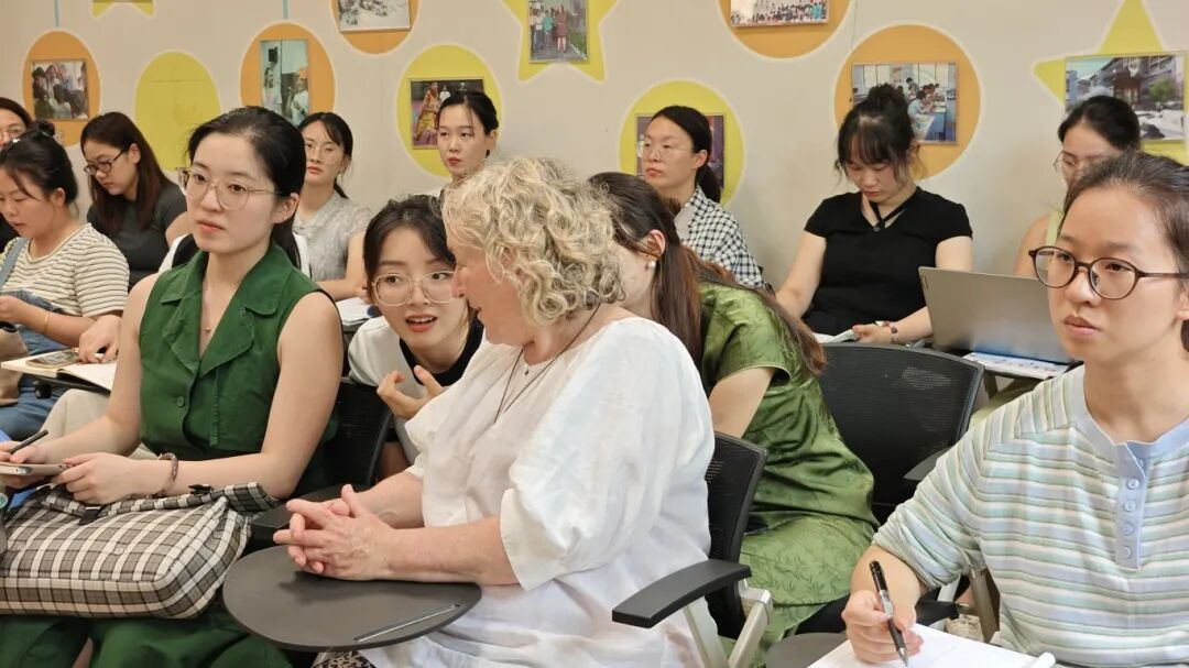 秋光正好赴研学,校际携手启新思。9月24日,澳大利亚学者Anne教授应邀到访新北区龙虎塘实验小学,围绕“代际学习”和“气候变化教育”两大主题开展国际交流活动。新北区潘虹“小满优班”优秀班主任培育室成员与新北区顾惠芬优秀家庭教育指导师培育室成员、校方隔代互学项目组成员代表及祖辈家委代表一道,共赴这场跨文化、跨代际的教育交流盛宴。