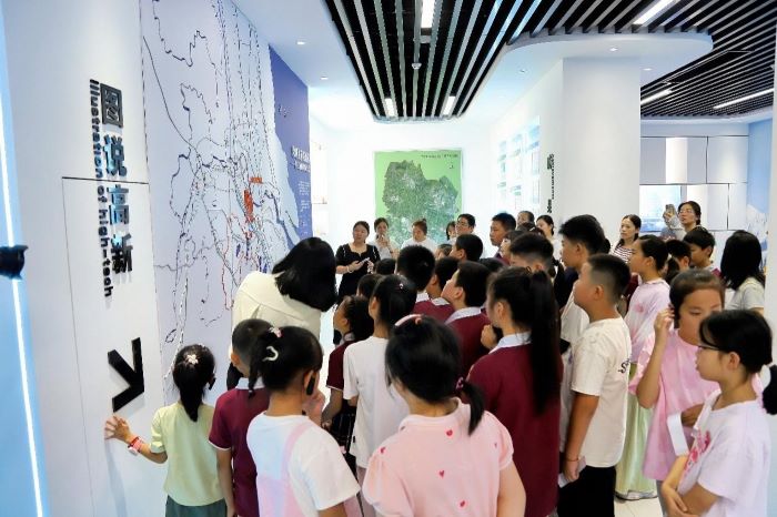 8月23日下午,来自龙虎塘二小、新华实验小学、教科院附中、局前街小学等学校的80多位学生及家长来到了常州市新北测绘科普教育基地,每人领取了一份试题,开启了今天的测绘知识探索之旅。夏令营活动中同学们首先参观了科普展示馆,在这里通过讲解员的讲解,同学们学习了测绘知识、测绘精神,也了解了常州“智造”在国家重大工程中的作用。科普展示馆新增设的实景三维互动屏让众多学生产生了浓厚的兴趣并驻足体验,纷纷在互动屏中寻找自己的学校和小区。