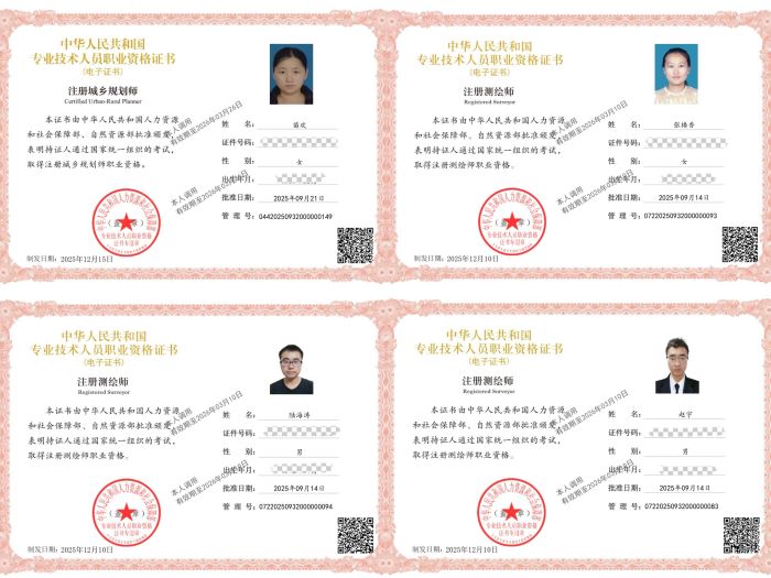 中心坚持人才驱动,着力构建学习型组织。今年,人才培养实现历史性突破:陆海涛、张楼香、赵宇一次性通过注册测绘师考核、苗欢通过注册规划师考核。这4名职工新晋国家级注册师队伍,是中心系统性培养机制的成果,为核心技术能力提升和业务创新注入了新的强劲动力。