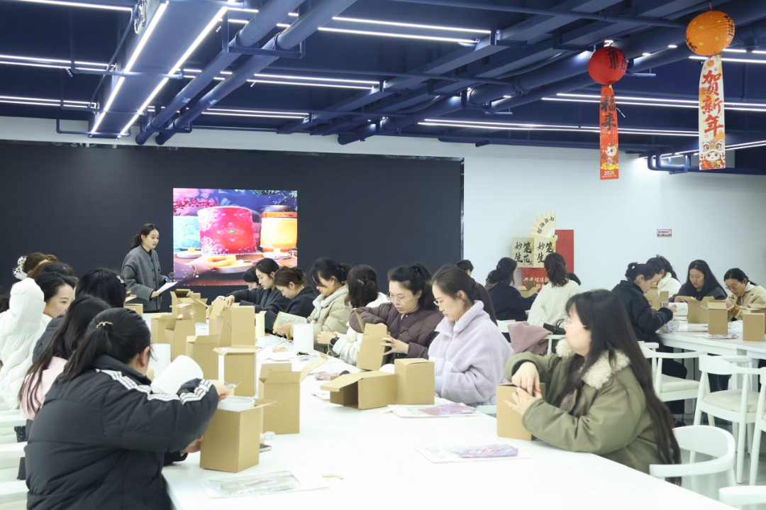 在宋锦台灯手工制作环节,大家将非遗宋锦面料与现代灯具巧妙结合,搭配珍珠、贝壳等装饰,精心打造兼具传统美学与实用价值的宋锦台灯。指尖流转间,非遗技艺与巧思创意相融,一件件精致作品次第呈现,现场洋溢着欢声笑语。