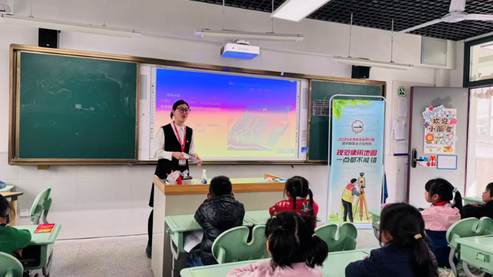 1月16日下午,常州市博爱小学的教室里迎来了一堂别开生面的趣味科普课。常州市新北自然资源和规划技术保障中心党支部宣传委员鲍文月化身“国家地图的超级侦探”,为二年级的小朋友们带来了一场以“守护国家版图”为主题的生动讲座,将国家版图意识、测绘科普知识和爱国情怀的种子,播撒进孩子们的心田。